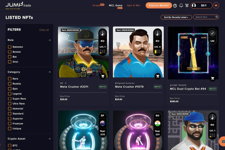 🏏 Recently, Jump.Trade made waves with the World's First P2E Cricket Game NFT collection! 🏆🎉 They dropped an astonishing 55,000 Meta Cricket League NFTs, which were sold out in under 9 minutes. Talk about demand! 🚀